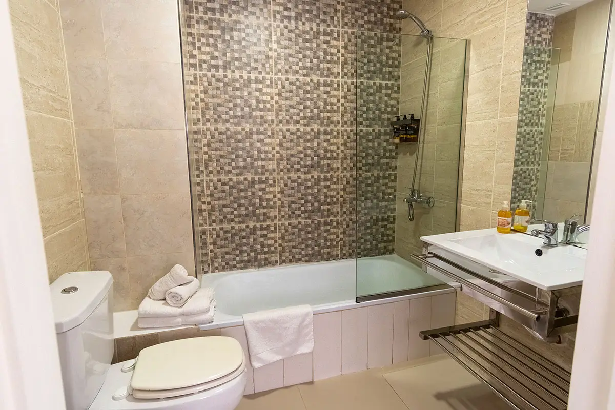 Possui janelas com vidros duplos para redução de ruído, cama King Size ou Twin, mesa de parede com cadeiras, frigorífico, ar condicionado quente/frio, TV LED ou SMART (sujeito a disponibilidade), cofre, banheiro completo com banheira, kitchenette com fogão elétrico, microondas, chaleira elétrica, torradeira, louças e utensílios de cozinha.